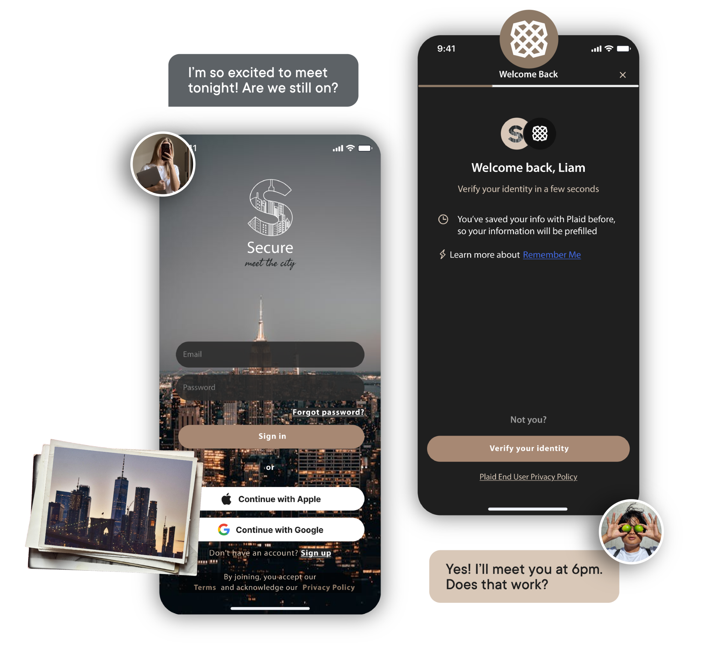 Secure uses Plaid’s industry-standard verification system to validate members before they connect. The same level of screening trusted by leading financial institutions — applied to dating.